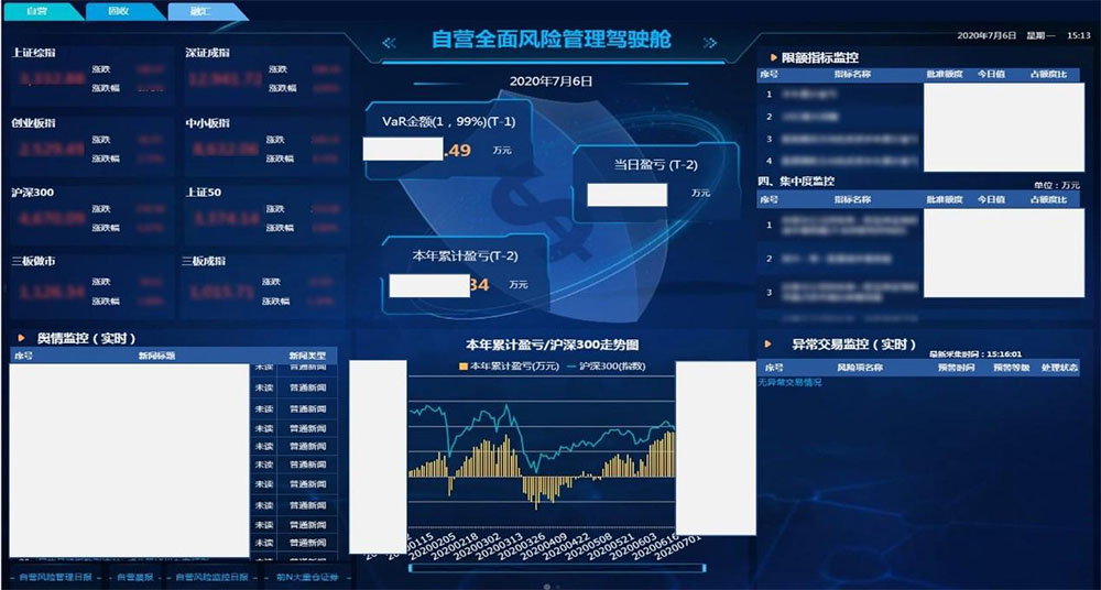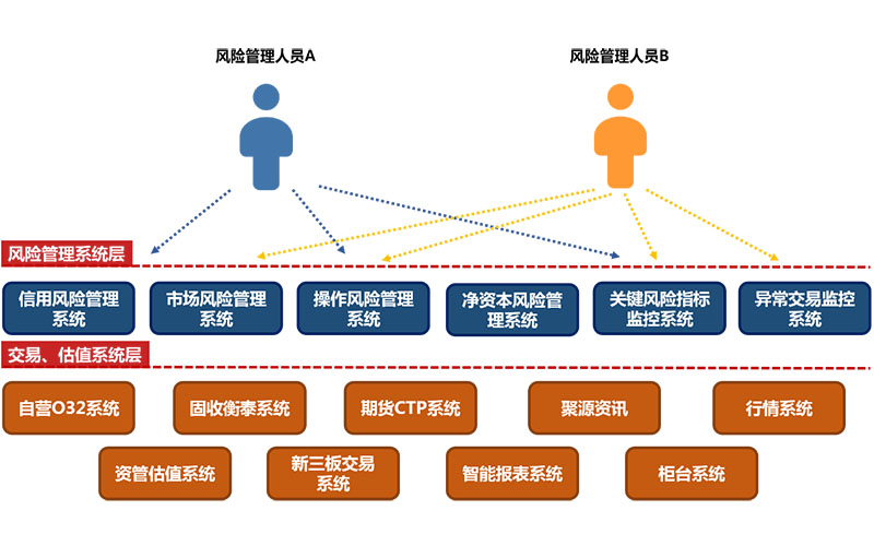 公司决策层和各业务风险管理负责人需要一个直观的系统平台,能够便捷、快速、直观的查看各业务的风险指标情况,如盈亏、VaR情况、负面舆情信息、限额情况、预警情况等等。